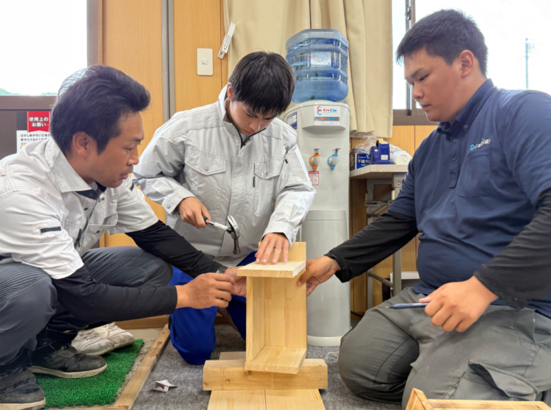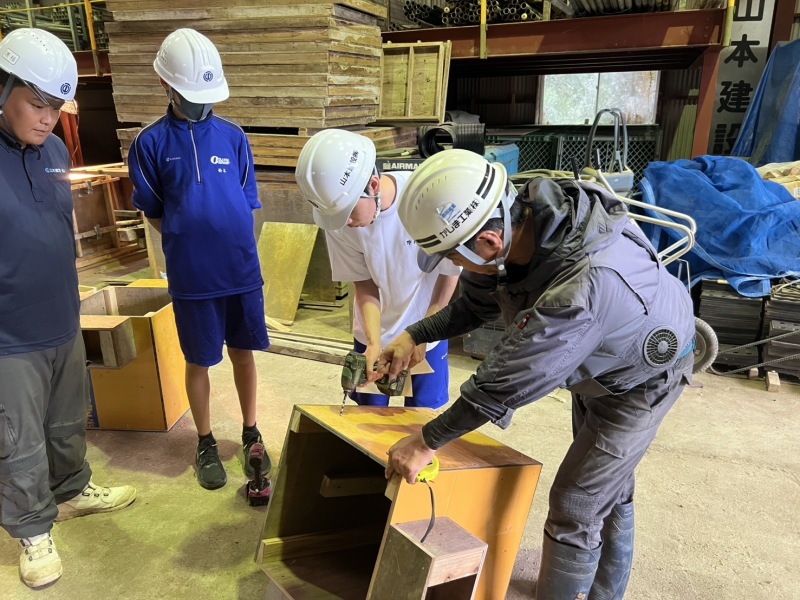 最終日は、若手社員による「鳥の巣箱づくりから学ぶ土木現場」というテーマで、図面をもとに計画を立て、実際にモノをつくる楽しさを体験してもらいました。