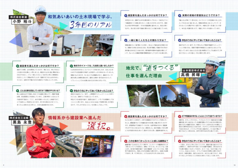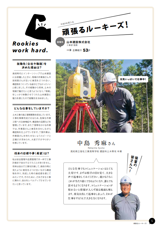 そして高知県建設業協会発行の建設業ガイドブックにも先輩社員のリアルボイスとして山本建設の若手社員を掲載いただいております。
